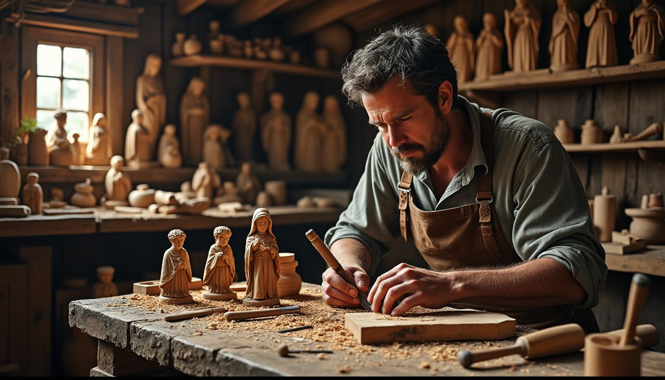 Brief : suivre un artisan, lire les veines du bois, écouter l’histoire que portent ces petites figures — voilà le chemin proposé, entre archives, atelier et musée.
