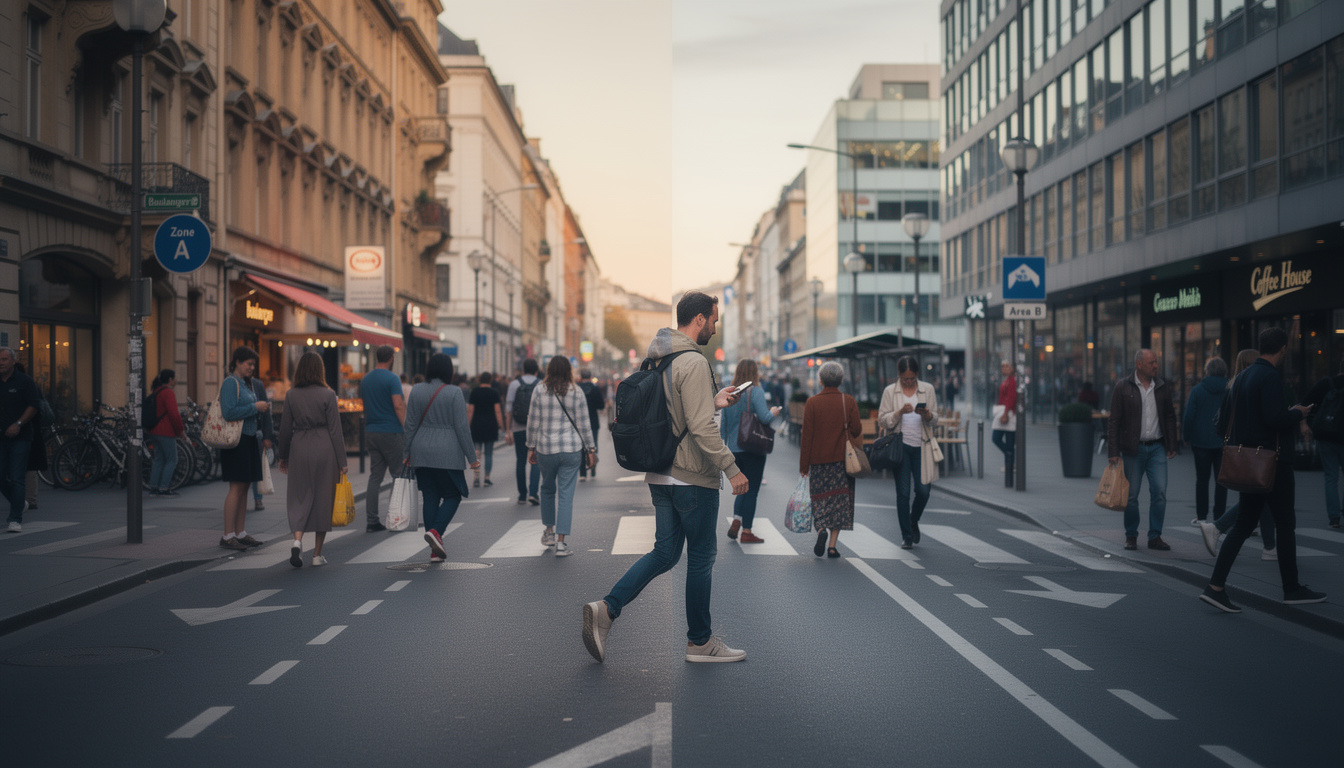 Dans ce coin de monde, la ligne qui sépare deux territoires n’est jamais spectaculaire : pas de barbelés, pas de postes, seulement des trottoirs qui changent de nom au détour d’une ruelle. Le protagoniste, Florian, remarque que la répétition du geste transforme la fréquence de ces allées et venues en une véritable chorégraphie quotidienne. ✨